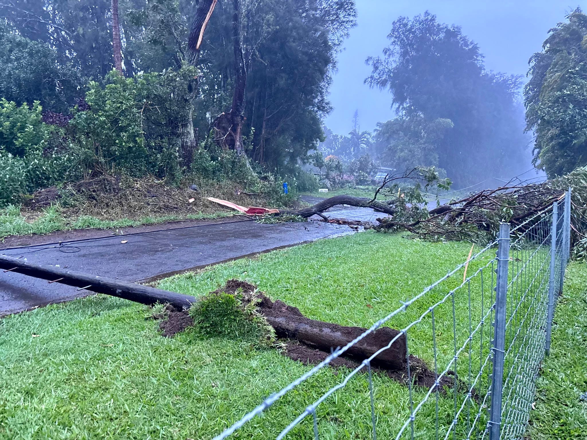 Saturday. Winds and rain arrive in the wee hours and I awake to neighborʻs calls and group text. Trees down taking power lines down. No floods in our neighborhood, so far those are in Kaʻu and Puna where they are now warning not watching. “A Flash Flood Warning means that flooding is imminent or occurring.” I have solar power and I am writing.