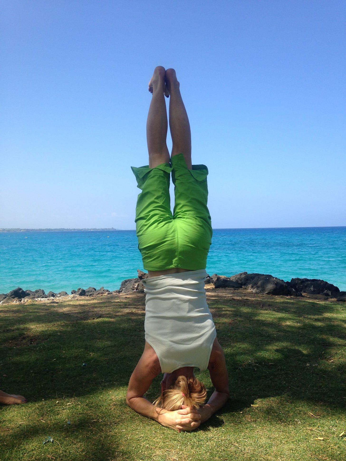 The goal I set for myself? Not being frail in my 80s would hardly motivate. Neither would “start taking yoga classes,” one of those New Years Resolution type “goals” that disappear before the arrival of March winds. The goal I set - at age 53 having never done this in my life - was to stand on my head in the middle of the room. Weekly yoga classes with at teacher who knew how to advance my skill level, and later daily home practice, were action steps - not goals.